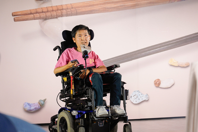 38歲的院生代表張孜維,罹患先天性肌肉萎縮症,自5歲起入住教養院。他以不屈精神書寫人生傳奇─榮獲第二十九屆「金鷹獎」身心障礙楷模,全國僅十位得主;更曾拿下總統教育獎、台北市長獎,現就讀國立體育大學博士班。孜維同時是台灣地板滾球國手,屢次代表台灣征戰國內外賽事奪冠。這次他設計的「蝴蝶筷 架」象徵突破與重生,把生命力注入日常器物。他分享,學習陶藝讓自己體悟「慢慢來也沒關係」的價值,只要願意嘗試,就能留下努力的痕跡。