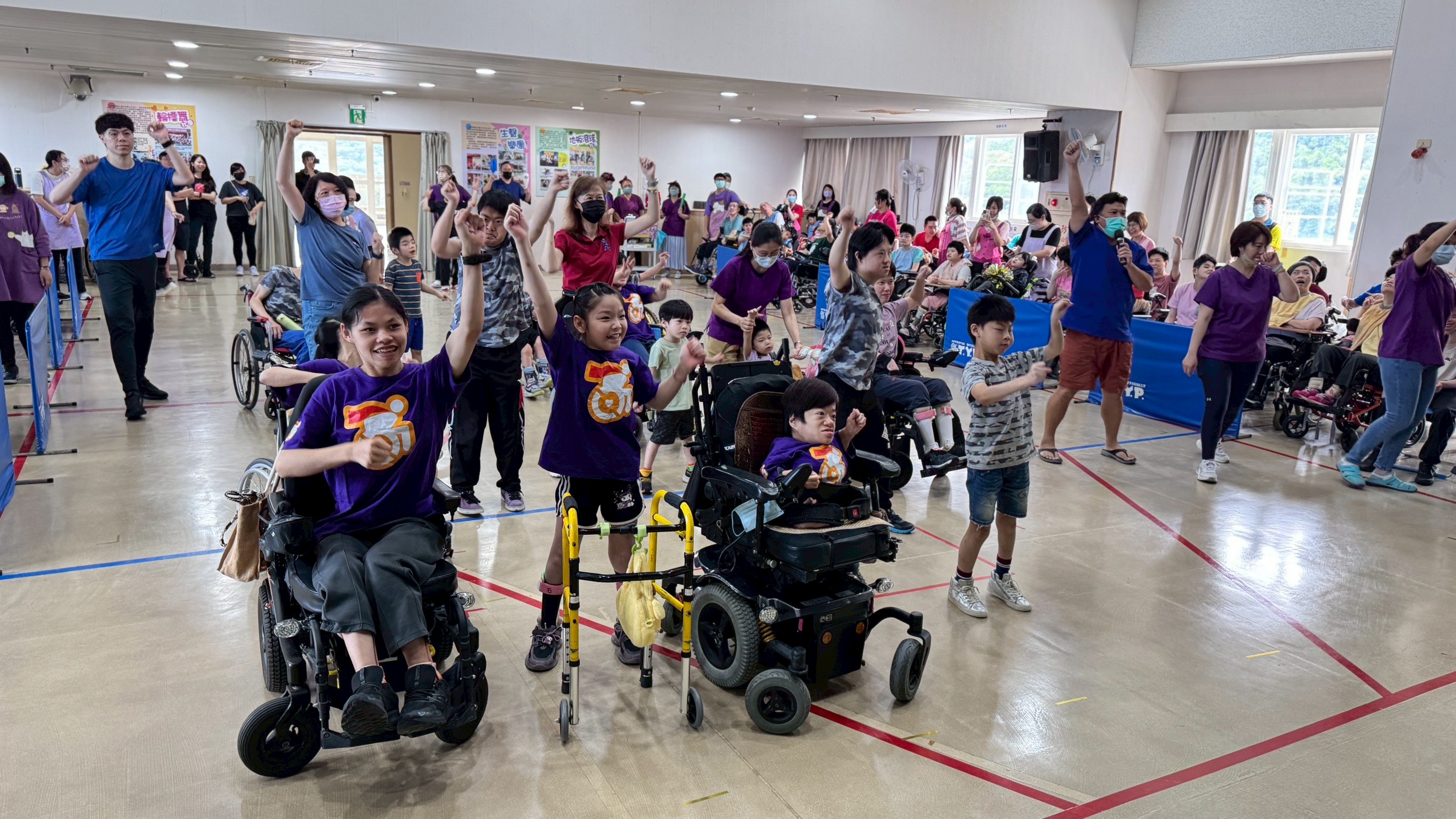 運動會賽前,八里愛心教養院老師及院生進行暖身舞