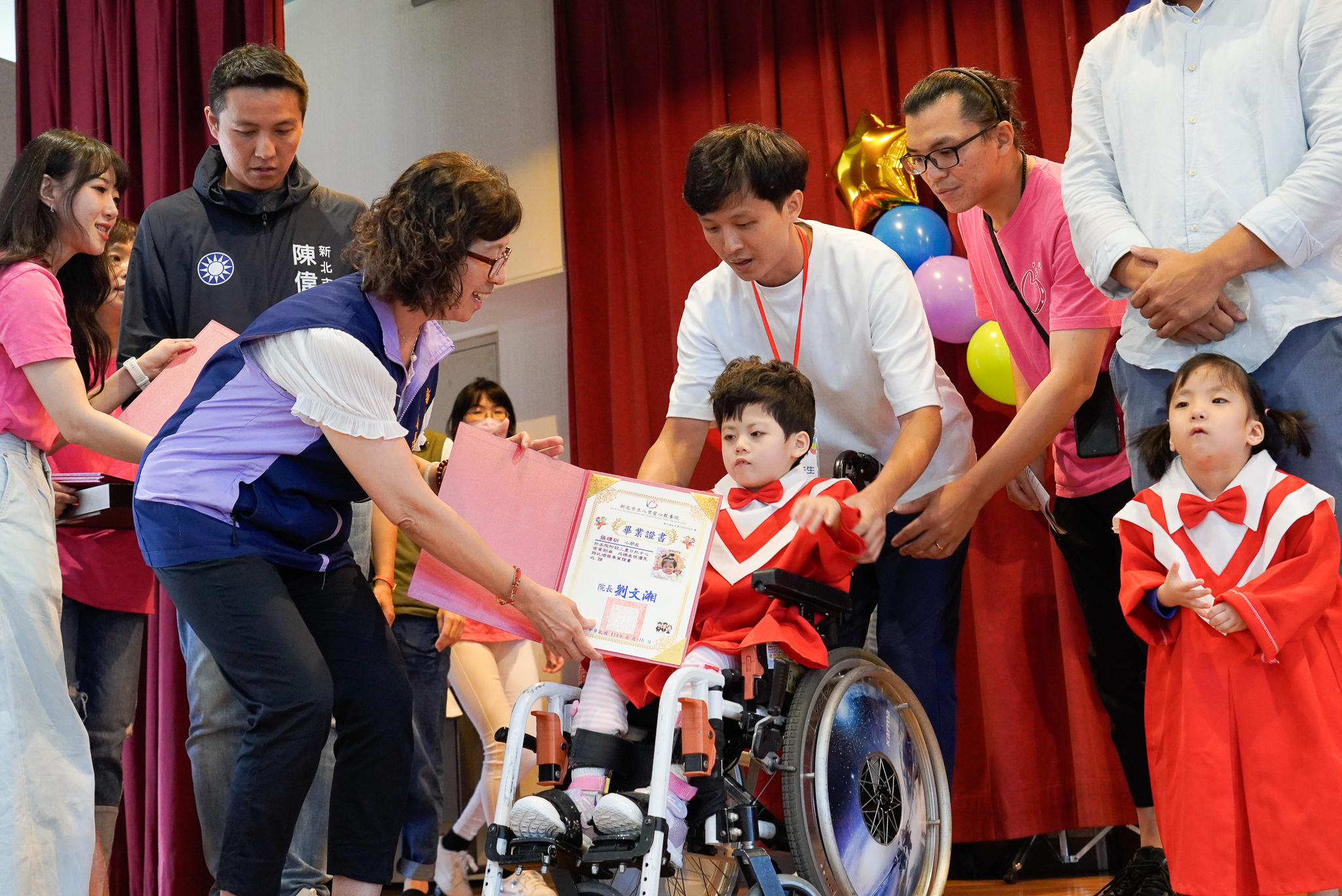 社會局副局長許秀能(左)頒贈畢結業證書給慢飛天使