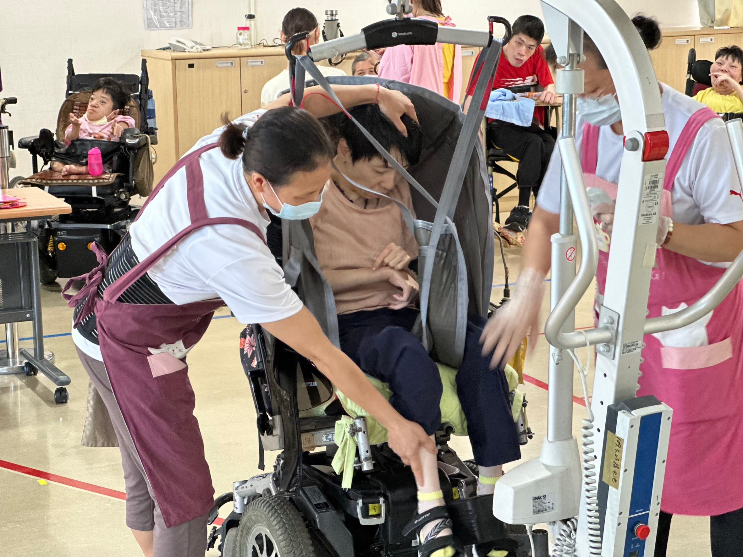 參賽人員使用移位機替服務對象轉移位